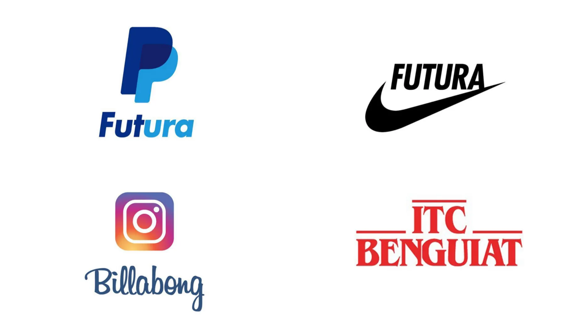 But don’t take Vassiliou’s (or my) word for it. Designer Emanuele Abrate breaks it down for you in his project Logofonts, in which he replaces the brand name in famous logos with the name of the font it is set in (or at least the font that was the inspiration for it). Journalist Jack Shepherd discusses the project with Abrate in an interesting article for UX Collective. Here are a few examples.